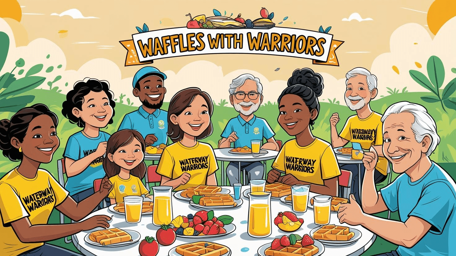 Join your fellow Waterway Warriors for our Waffles with Warriors Breakfast, a relaxed pay-your-own-way breakfast where we eat some good food, have great conversation, and a chance to connect with the amazing people who make our mission possible... YOU!